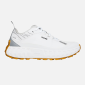 - Cabedal: malha de camada única, camurça (couro camurçado) e partes sintéticas com reforços; protetor perimetral para proteção extra